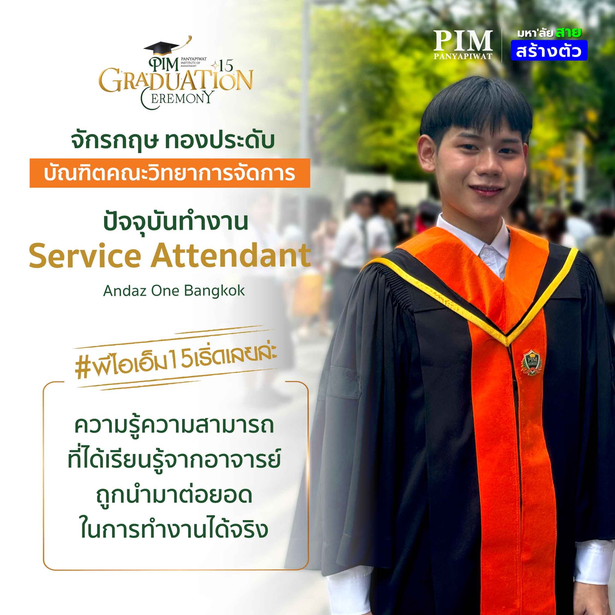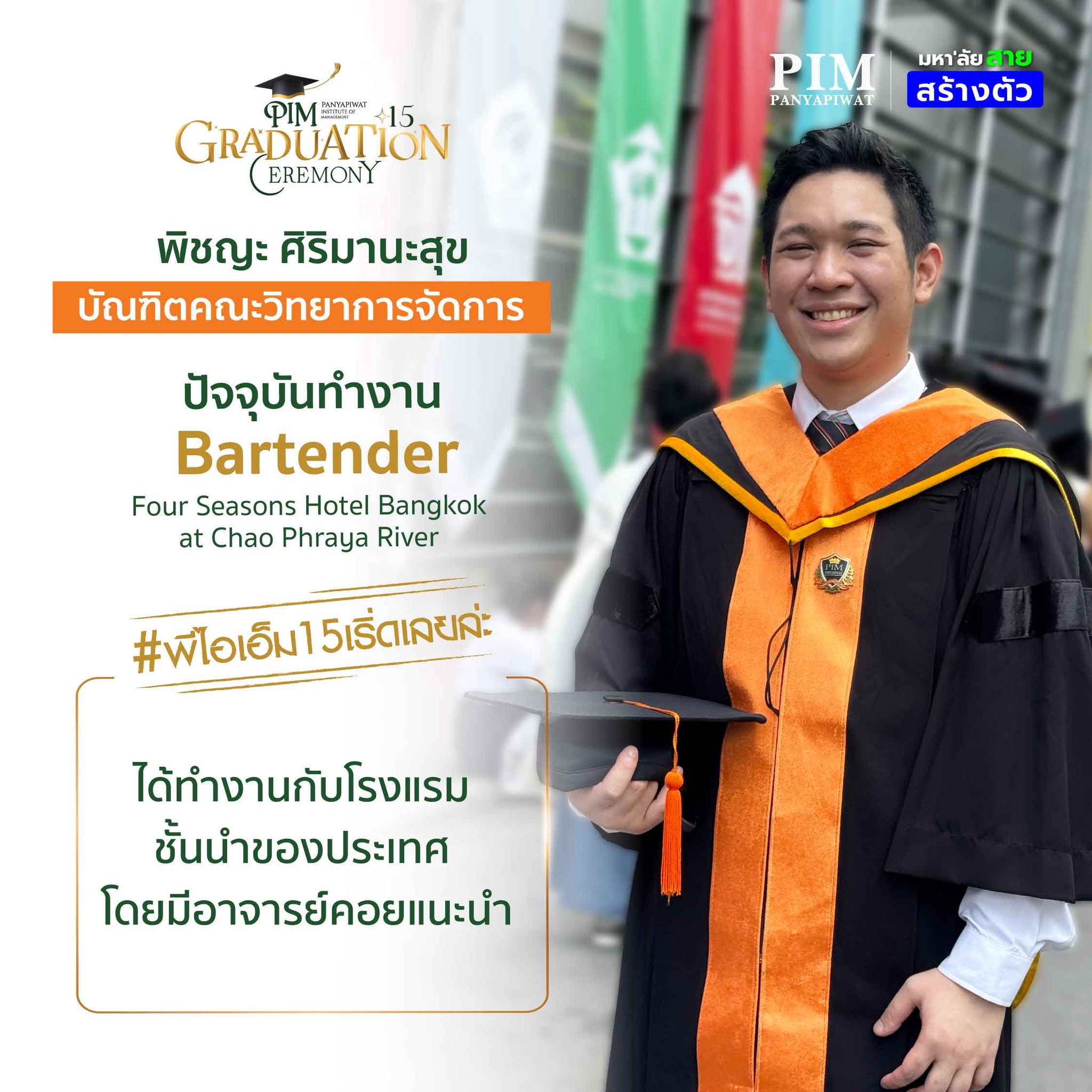 “เริ่ดเลยล่ะ” PIM ไม่ได้ให้แค่ความรู้แต่ ยังให้ประสบการณ์การใช้ชีวิต ทั้งในด้านการทำงาน ด้านการใช้ชีวิตส่วนตัว สอนให้เด็กทุกคนมีวินัยทั้งในการมาเรียนและไปทำงาน และประสบการณ์จากการฝึกงานในแต่ละครั้งก็สอนให้เด็ก PIM มีความคิดใผ่รู้และมุมมองในแบบที่ผู้ใหญ่หรือคนวัยทำงานคิดหรือทำมากขึ้น